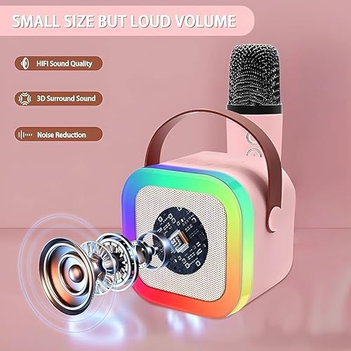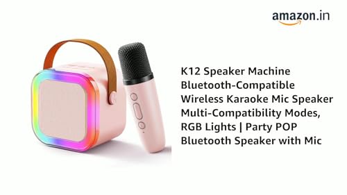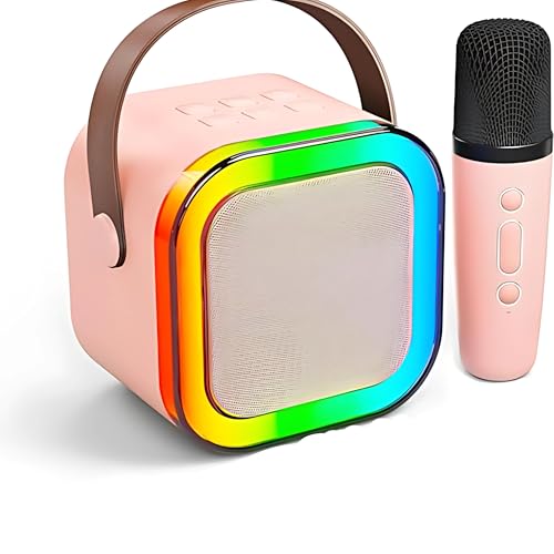 Belking - مكبر صوت كاريوكي بلوتوث K12 مع ميكروفون، آلة كاريوكي لاسلكية وإضاءة ار جي بي، مكبر صوت بلوتوث للحفلات بوب مع ميكروفون من بلكين - وردي
