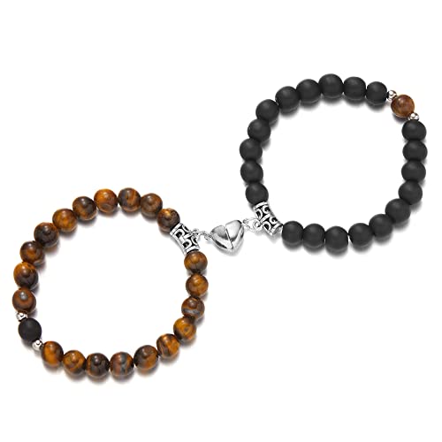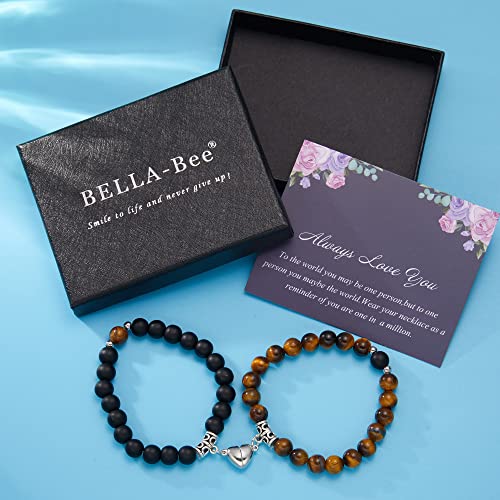 BELLA-Bee - اساور مغناطيسية للازواج، لعلاقة المسافات البعيدة، سوار خرز من الحجر الطبيعي، للحبيب والحبيبة والنساء والرجال والعشاق والاصدقاء, ستانلس ستيل, بدون أحجار كريمة، الأولاد