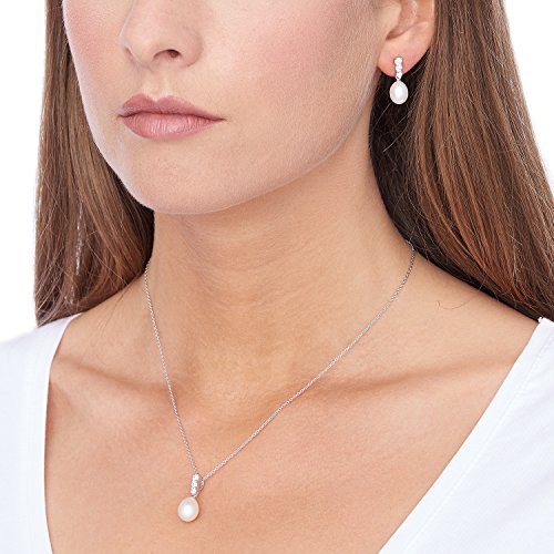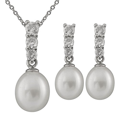 Bella Pearls - مجموعة من حلقان متدلية ودلاية بطول 18 بوصة من لؤلؤ المياه العذبة الابيض من الفضة الاسترليني والزركونيا المكعبة من بيلا بيرلز, اخرى, لؤلؤي^زركونيا مكعب