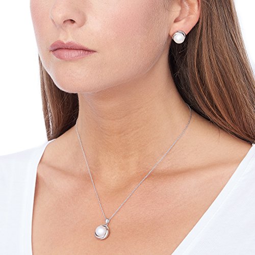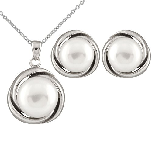 Bella Pearls - مجموعة حلقان فضة استرليني مصنوعة من لؤلؤ المياه العذبة الابيض بدلاية من بيلا بيرل مع سلسلة 18 بوصة، فضي، للنساء