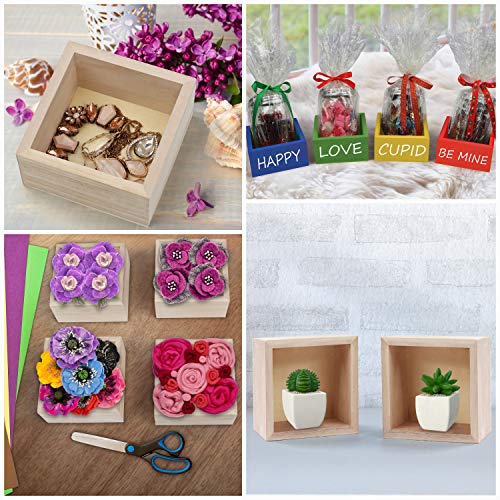 BELLE VOUS - صندوق تخزين من الخشب غير المطلي مقاس 9.5 × 9.5 × 5 سم صغير الحجم بتصميم مربع ومظهر ريفي طبيعي لديكور المنزل والمجموعات والنباتات العصارية والحرف اليدوية من بيل فو، 4 قطع