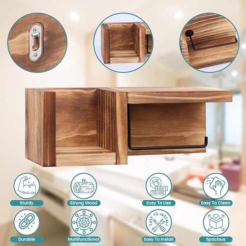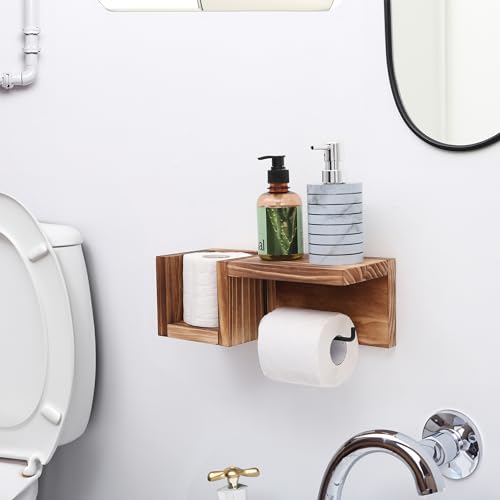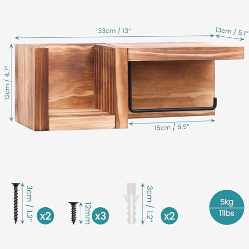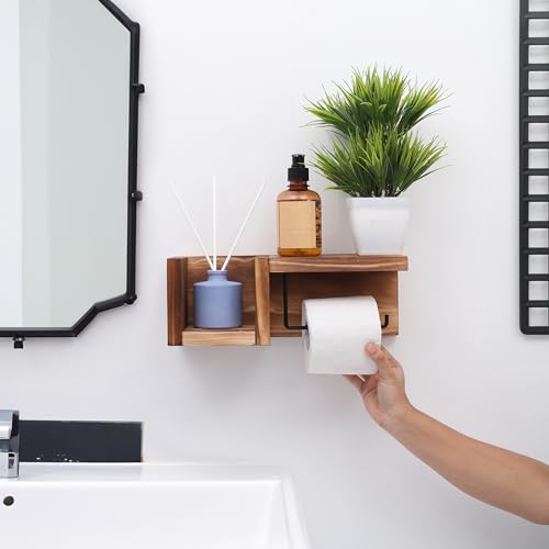 BELLE VOUS - حامل ورق تواليت خشبي مع رف بنمط ريفي يثبت على الحائط لديكور الحمام والتخزين من بيل فو