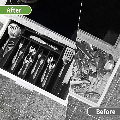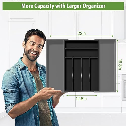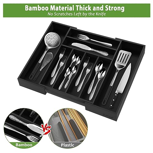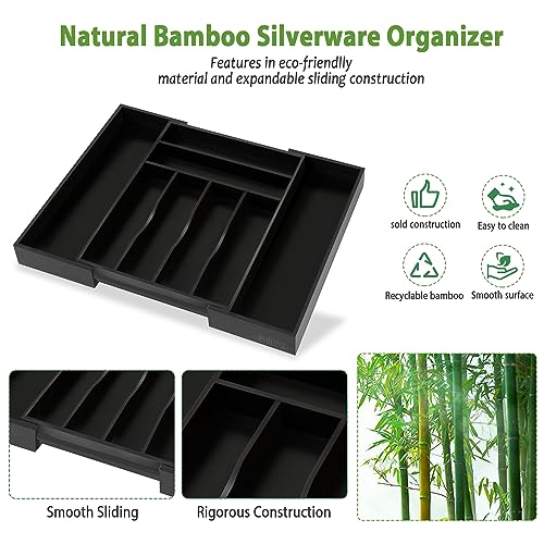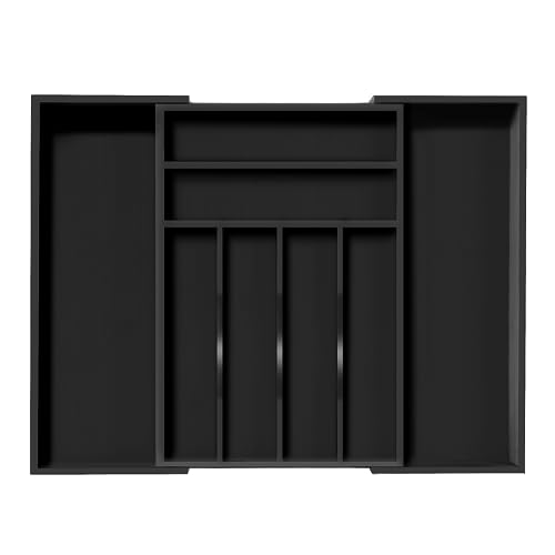 Bellsal - بلسال منظم ادراج مطبخ كبير باللون الاسود بعرض 22 انش، منظم ادوات مائدة من الخيزران قابل للتوسيع لادوات المائدة الكبيرة - اسود
