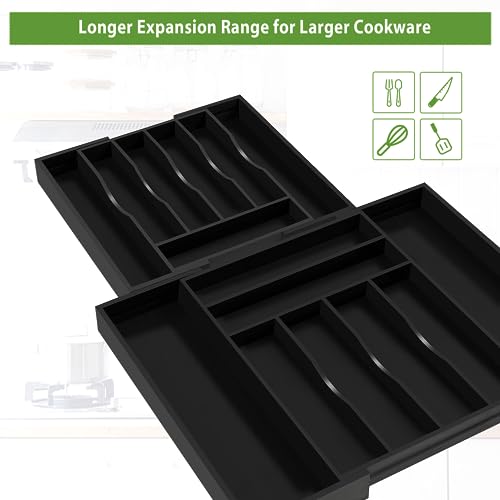 - ✅【غضب توسيع أطول】لدينا أطول منظم أدوات فضية في السوق، يمكنك توسيع منظم درج المطبخ من 12.8 انش إلى 22 انش. التصميم الفريد يجعله مناسبًا للأدراج الكبيرة. كما تجعل المقصورات القابلة للتوسيع أفضل لأواني الطهي الأكبر حجمًا