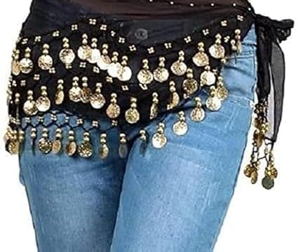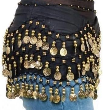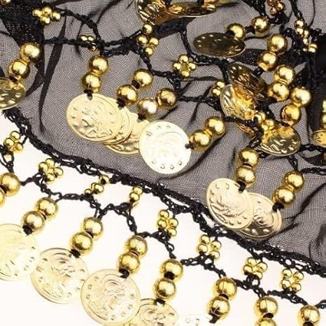 Generic - زي الرقص الشرقي، حزام اسود/ذهبي، مقاس واحد يناسب معظم الناس، ملابس اداء مصرية للنساء، نمط رقص شرقي