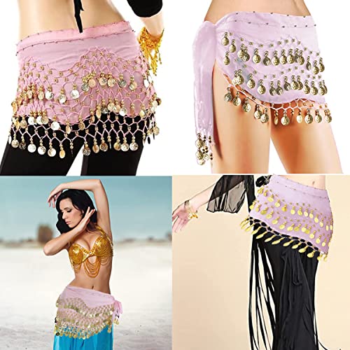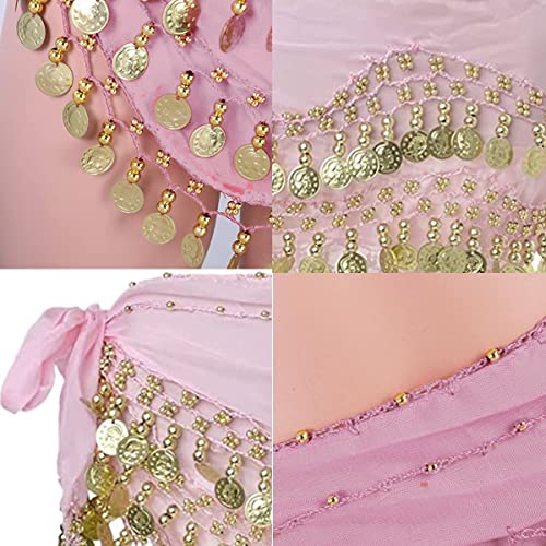 Aoflyda - وشاح ورك للرقص الشرقي، تنورة رقص شرقي مع 98 عملة ذهبية متدلية للاداء التنكري والرقص الشرقي ودروس اليوغا، تنورة ملفوفة للرقص الشرقي او دروس اليوغا