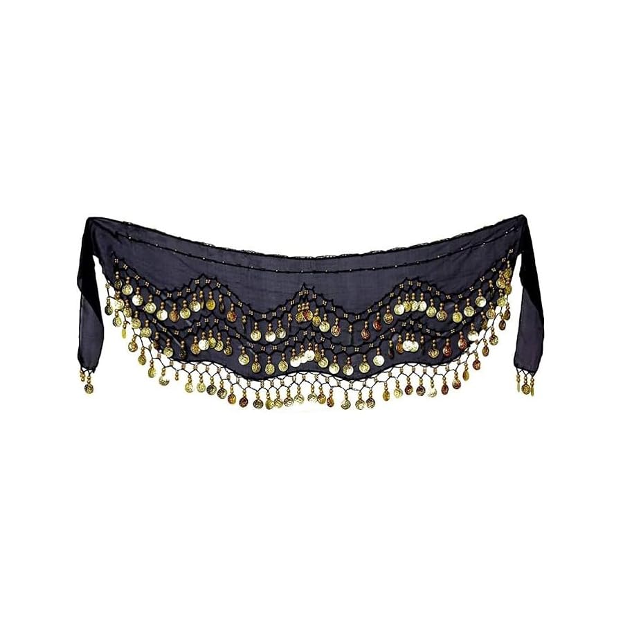 generic - سكارف خصر للرقص الشرقي للنساء مع 128 عملة معدنية، حزام قبلي لجيبة لف، اكسسوار لزي الأداء ودروس الرقص أو زي الجنية التنكري للهالوين، لون أسود، مقاس واحد