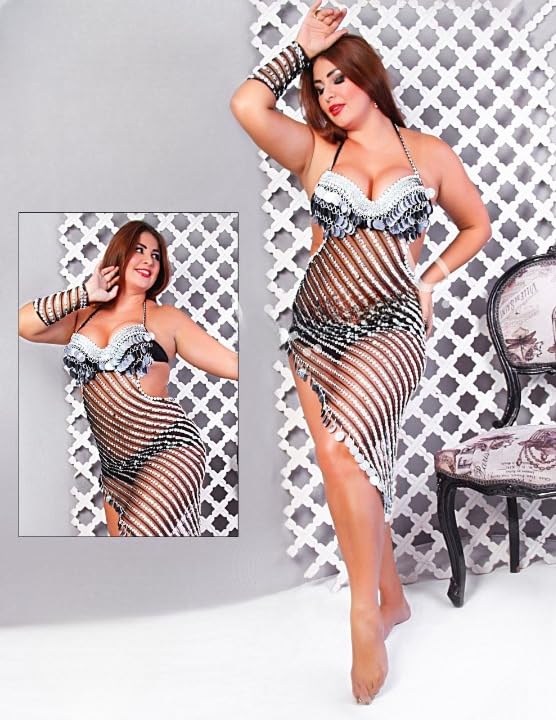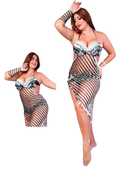 Generic - بدلة رقص شرقي قطعتين مطرزة بالعملات الفضية – طقم رقص شرقي مودرن – ملابس رقص– وان سايز
