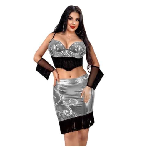 generic - بدلة رقص شرقي بحمالة صدر رافعة بوش اب وتصميم مطرز يدويا وبأساور أنيقة للمعصم من الجلد اللامع، مقاس واحد، موديل 2419