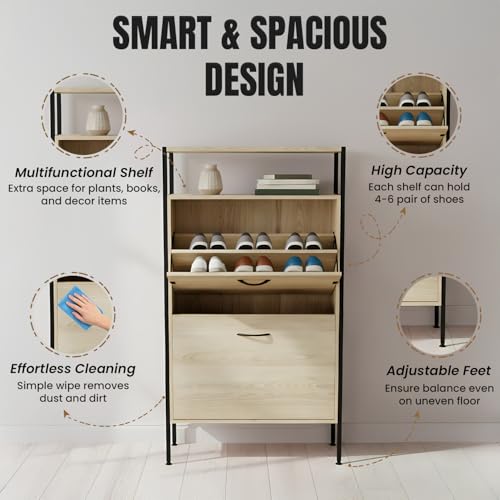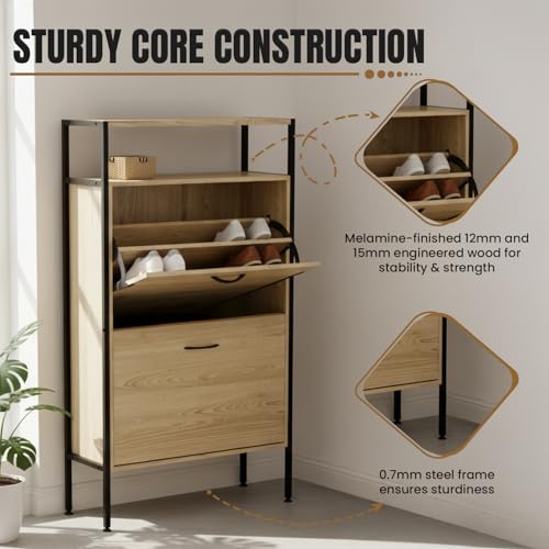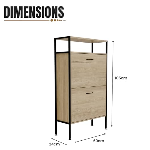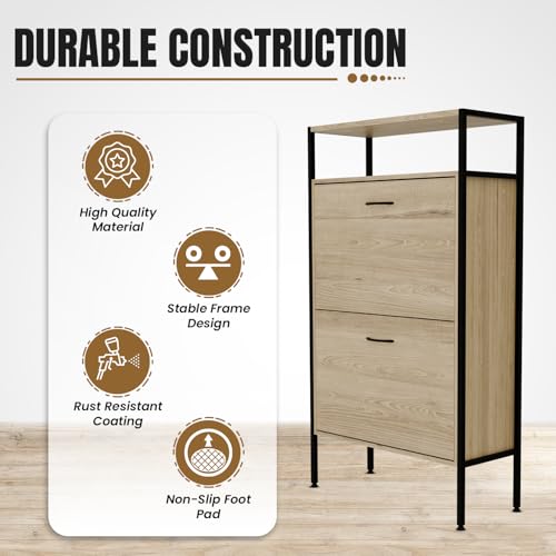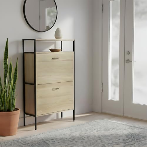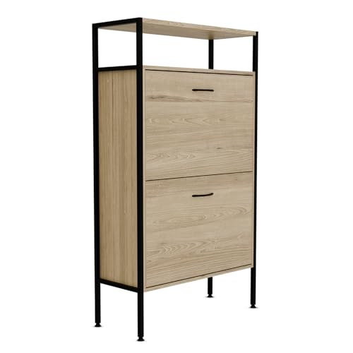 BELOFAY - جزامة تخزين أحذية خشبية قائمة على الأرض وبإطار فولاذي و2 درج، دولاب أحذية للمنزل العصري والمداخل وغرف المعيشة من بيلوفاي