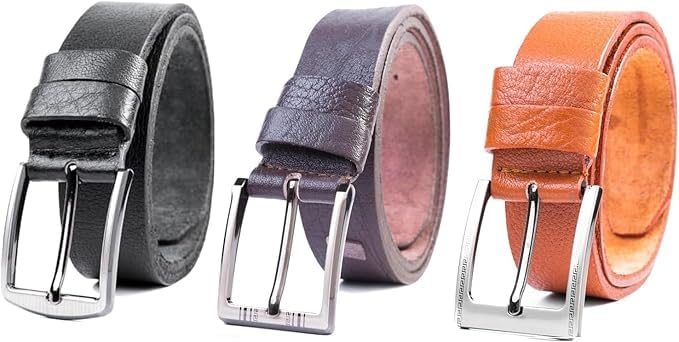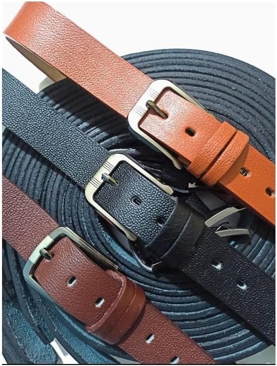 Generic - حزام للرجال من الجلد الطبيعي، متين بسمك 4 ملم وعرض 4 سم - حزام جلد طبيعي 100% - 3 قطع اسود وبني وهافان (بني-هافان)