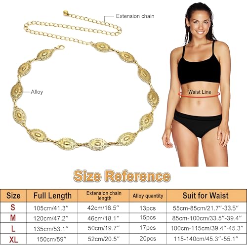 Generic - حزام غربي أنيق للنساء مع سلسلة خصر من المعدن وتصميم كونشو صغير، مثالي لعشاق الموضة البوهيمية