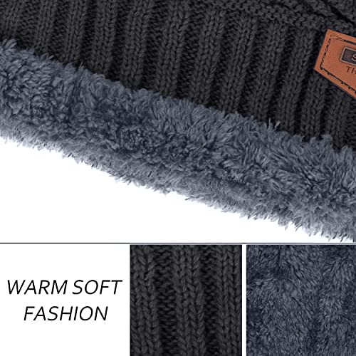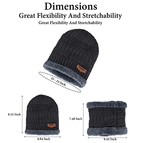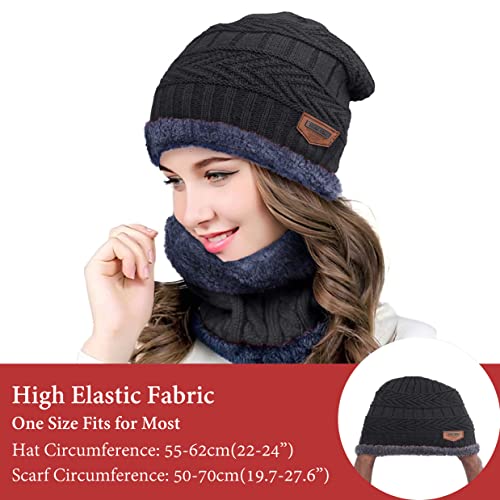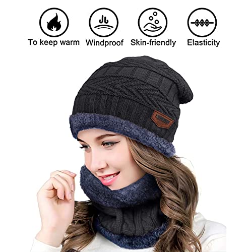 BEMALL - قبعة شتوية من الصوف للنساء مع كاتم صوت للرقبة تحذير ناعم للثلج | مجموعة قبعة صغيرة محبوكة ووشاح لتدفئة الرقبة للنساء (مجموعة من قطعتين)، رمادي، مقاس L