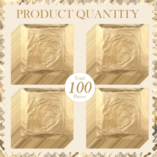 - الأبعاد: مقاس كل ورقة تقريبًا 14 × 14 سم، اللون: ذهبي، الكمية: 100 ورقة.
