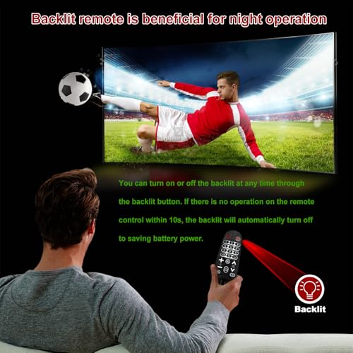 - سهل الاستخدام: يمكنك تشغيل الإضاءة الخلفية أو إيقافها في أي وقت عبر زر الإضاءة الخلفية. إذا لم يتم تشغيل جهاز التحكم عن بعد في غضون 10 ثوانٍ، يتم إيقاف الإضاءة الخلفية تلقائيًا إلى .