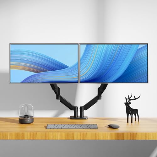 BEMMY - حامل شاشة مكتبي مريح، بتصميم مدمج وقابل للسحب، يدعم شاشات من 13 إلى 32 بوصة، مزود بذراعين مزدوجين مع نابض غازي لحركة كاملة قابلة للتعديل من بيمي
