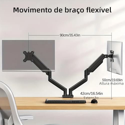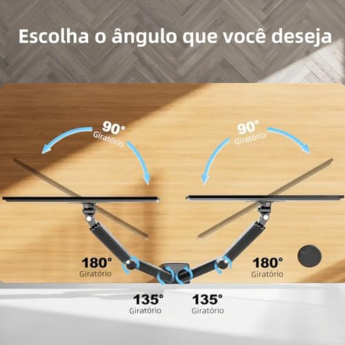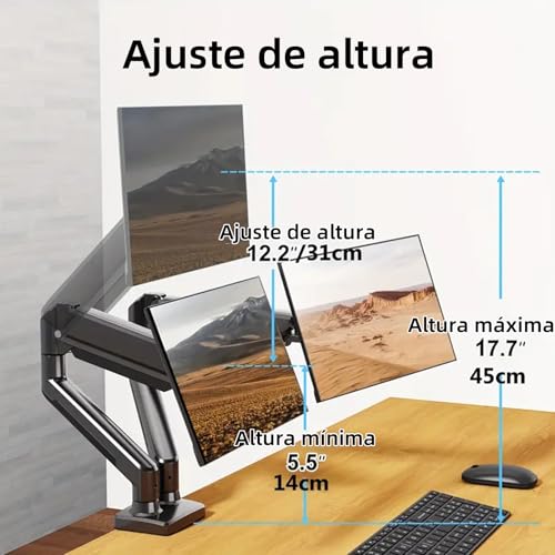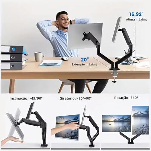 - حامل شاشة مزدوج مزود بنابض غازي - يتيح لك تعديل الارتفاع بسهولة، والإمالة (+90°/-45° درجة)، والدوران (+/-90° درجة)، ودوران كامل 360° للحصول على زاوية مشاهدة قابلة للتخصيص بالكامل تتيح ضبط الشد بدون أدوات حركة سلسة وسهلة للحامل.