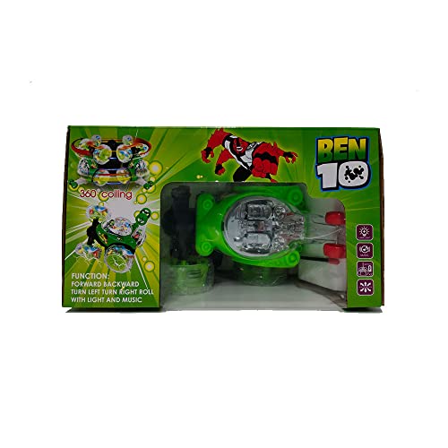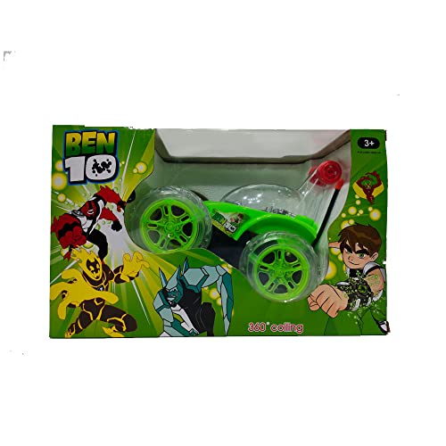 Generic - سيارة بريموت كونترول مزودة باضاءة LED وقابلة لاعادة الشحن بتصميم بن تن للاولاد، بلون اخضر