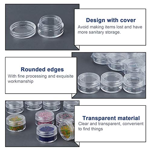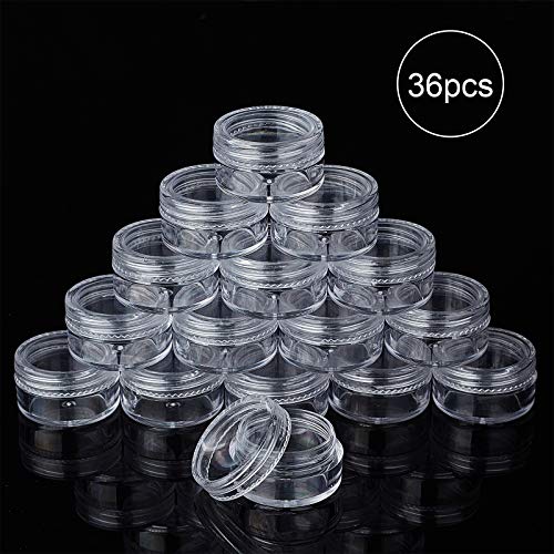 BENECREAT - برطمان تخزين خرز بلاستيكي شفاف فارغ سعة 3 مل مع اغطية علوية دائرية للخرز وفن الاظافر والجليتر وكريم السفر من 36 قطعة من بينيكريت