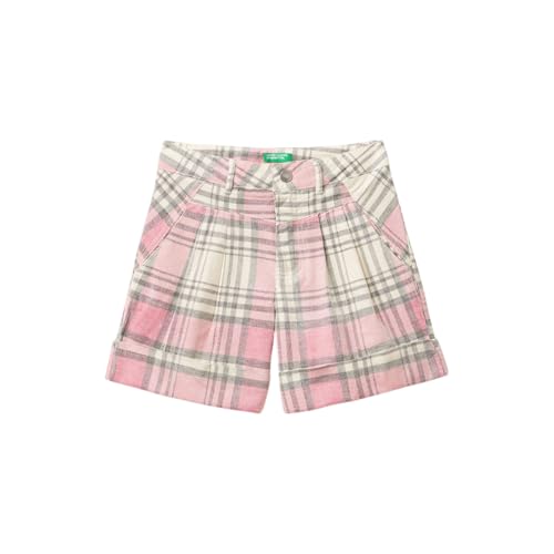 United Colors of Benetton - شورت برمودا قطيفة بنمط تارتان للبنات من بينيتون