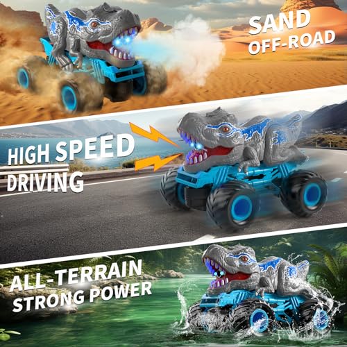 - 【تجمع بين الديناصورات المفضلة للأطفال وعناصر السباق】 تتميز سيارة الديناصورات التي تعمل بالتحكم عن بعد بمظهر لعبة فيلوسيرابتور العنيفة ووظائف لعبة السباق، ويمكن تحقيق أمنيتي في نفس الوقت. تأثيرات صوتية زرقاء وديناصور بإضاءة LED تنشط هذه السيارة التي تعمل بجهاز تحكم عن بعد أثناء اللعب في الداخل والخارج. يمكن للأطفال إضافة القليل من الماء إلى رأس سيارة الديناصور بجهاز التحكم عن بعد والضغط على زر الرش الموجود على جهاز التحكم عن بعد، ثم تقوم سيارة الديناصورات التي تعمل بالتحكم عن بعد بإخراج "اللهب" من فمها المفتوح.