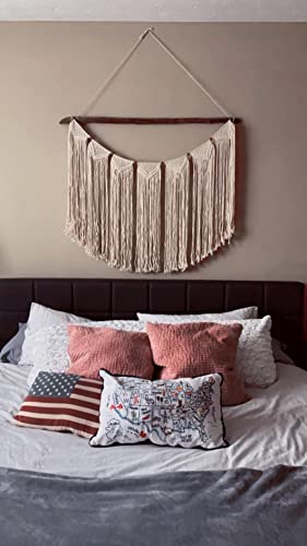 Benting - مكرمية كبيرة من بينتينج بطول 47 انش × عرض 28 تعلق على الحائط نسيج بوهيمي منسوج فوق السرير لتزيين والزفاف والكريسماس وغرفة النوم المعيشة والحضانة والسكن الجامعي عاجي