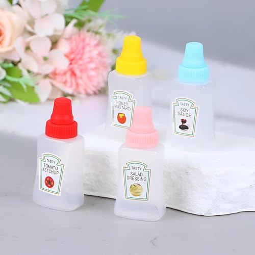 Generic - زجاجات بينتو بوكس - مجموعة من 4 زجاجات صغيرة قابلة لإعادة الملء للكاتشب، 23.6 مل، موزعات ضغط لدريسنج السلطة والمايونيز والشربات لتخزين الطعام (4 قطع من الألوان المعروضة)
