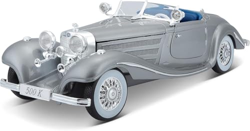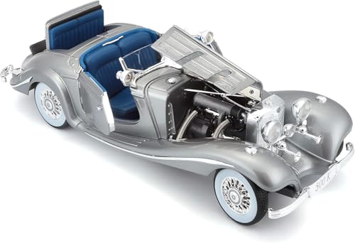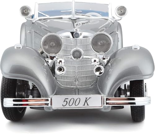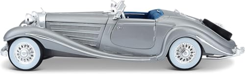 Generic - بنز 500K سبيشال رودستر، نموذج سيارة مصبوب بمقياس 1:24، فضي، مع هيكل معدني وأجزاء متحركة