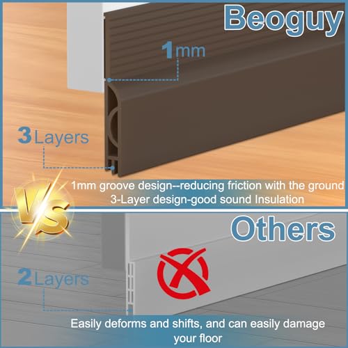 Beoguy - سدادة تيار الهواء للباب، ممسحة باب قابلة للتعديل لأسفل الباب، حشو فجوة تحت الباب للأبواب الخارجية والداخلية، تحجب الضوضاء والهواء البارد من بيوجي، بني، 99 سم