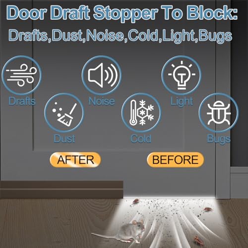 - يمكن استخدامها على نطاق واسع - تناسب معظم الأبواب: تتميز سدادة تيار الهواء تحت الباب بطول إجمالي: 99 سم / 1.98 م، العرض: 5 سم، مناسبة للفجوات حتى 3 سم. يمكنك تثبيتها على الارتفاع المطلوب وفقًا للفجوة بين الباب والأرض. سدادة الباب ذاتية اللصق مثالية لتغطية الفجوات تحت الأبواب الخارجية والداخلية وأبواب الحمام والمرآب والأبواب المنزلقة ولوح القاعدة والعتبات والنوافذ وغيرها. (ملاحظة: يرجى قياس فجوة الباب قبل الشراء.)