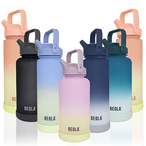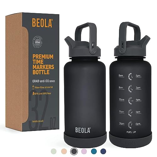BEOLA - زجاجة مياه تحفيزية مع مؤشرات زمنية مصنوعة من بلاستيك تريتان خالي من مادة بيسفينول أ مقاومة للتسرب والصدمات من بيولا، لون مورنينج روز، سعة 1 لتر