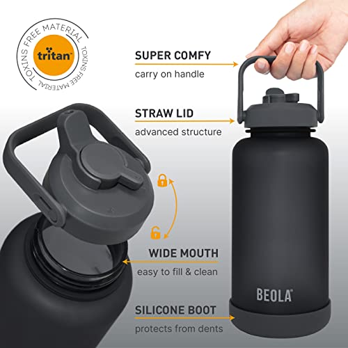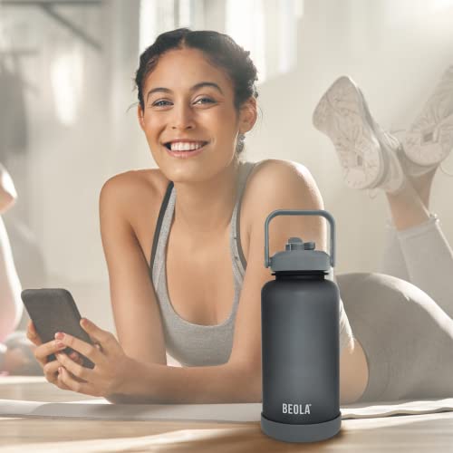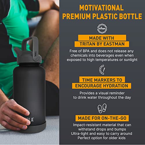 - زجاجة مياه بسعة 1 لتر من بيولا مزودة بمؤشرات زمنية صباحية ومسائية تساعدك على متابعة كمية الماء التي تشربها وتحفيزك لتحقيق أهداف الترطيب اليومية. أصبح من الأسهل من أي وقت مضى شرب الكمية المثالية من الماء يوميًا براحة تامة. ما عليك سوى ملء الزجاجة، الشرب حتى المؤشر كل ساعة، إعادة الملء، وتكرار العملية.