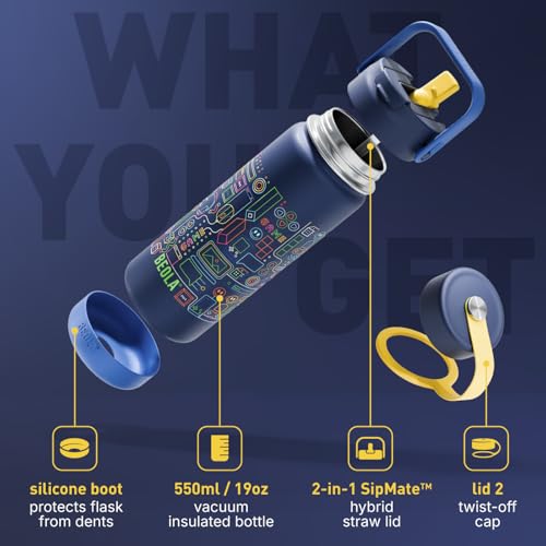 - محتويات العبوة: تحتوي هذه العبوة على زجاجة بسعة 550 ملليلتر مع غطاء بشفاطة للمشروبات الباردة وغطاء حلقي للمشروبات الساخنة والباردة. كما تأتي مع غطاء حماية من السيليكون للحفاظ على الزجاجة آمنة من الانبعاجات والخدوش.