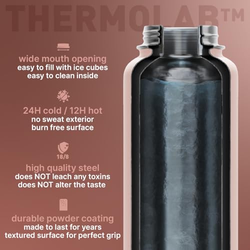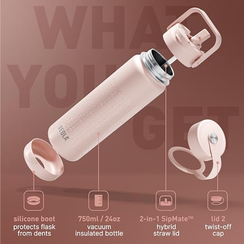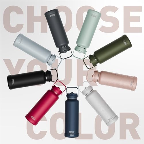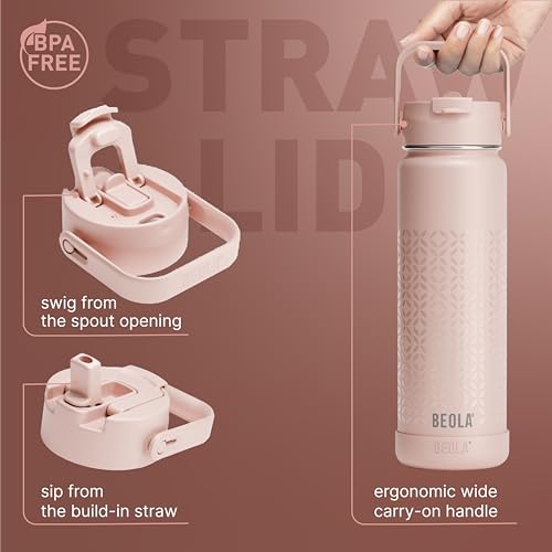 BEOLA - زجاجة مياه من الفولاذ المقاوم للصدأ 304 عيار 18/ 8 بجدار مزدوج معزول حراريا، زجاجة مياه بشفاطة وغطاء وفوهة واسعة، للسوائل الساخنة والباردة من بيولا، سعة 750 مل (تتضمن غطاءين)