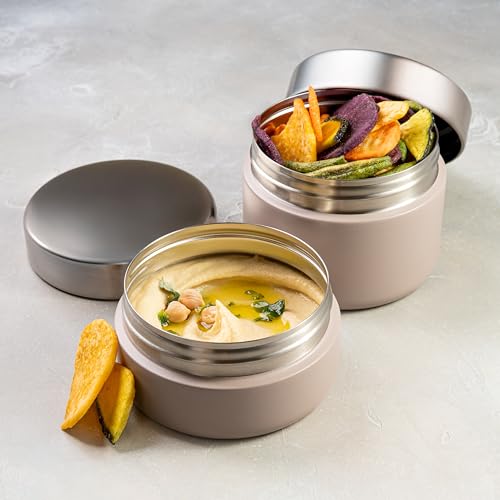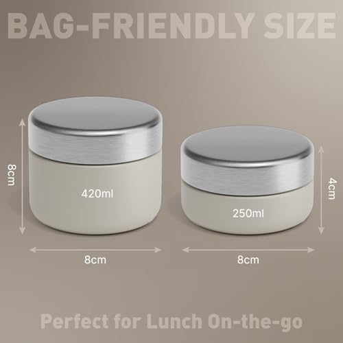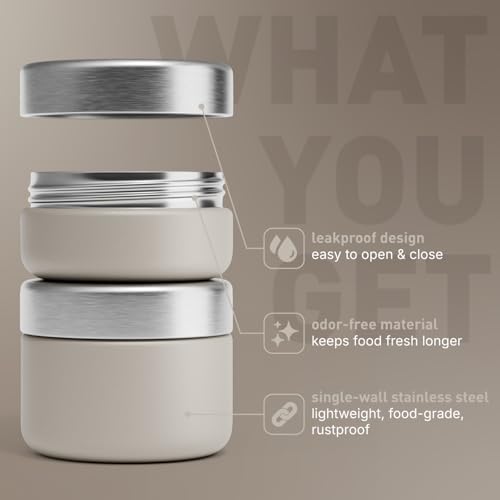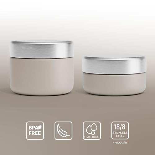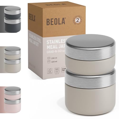 BEOLA - لانش بوكس محمول بتصميم برطمان من الفولاذ المقاوم للصدأ بجدار واحد لحفظ الطعام أثناء التنقل للبالغين والأطفال في المدرسة والمكتب خالي من مادة بيسفينول أ من بيولا، عبوة من قطعتين (لون بيج Sand Dune)