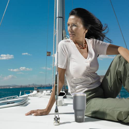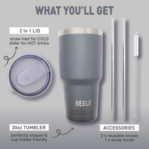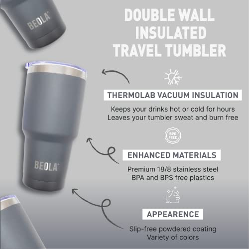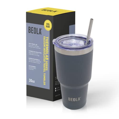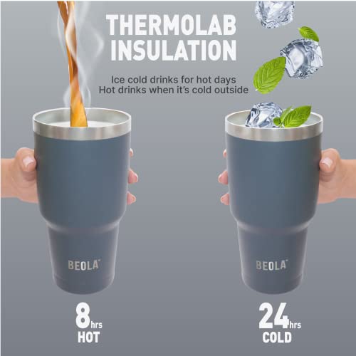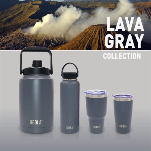 BEOLA - كوب معزول من سلسلة ثيرمولاب مع غطاء منزلق وشفاطة، زجاجة مياه من فولاذ مقاوم للصدأ 18/8، مج قهوة للسفر للمشروبات الساخنة او الباردة، سعة كبيرة 900 مل، رمادي لافا من بيولا