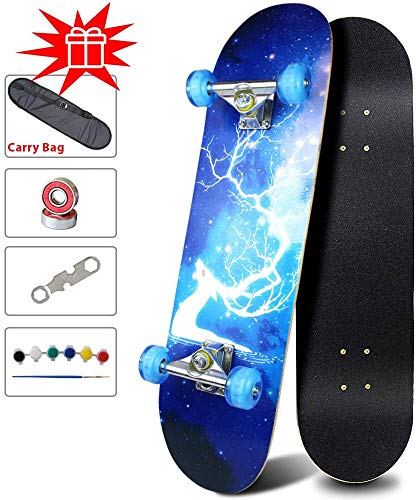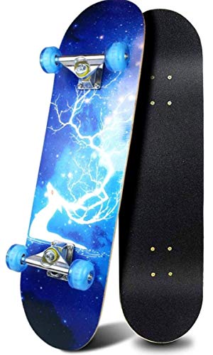 BePrincess - الواح تزلج كاملة من بي برينسيس - الواح تزلج قياسية مع عجلات وامضة ملونة للمبتدئين والاطفال والاولاد والبنات والمراهقين - 78.7 سم × 20 سم، لوح تزلج برو من خشب القيقب الكندي، الواح تزلج