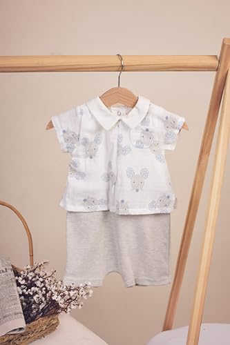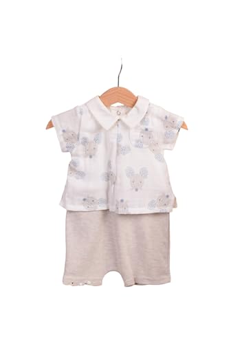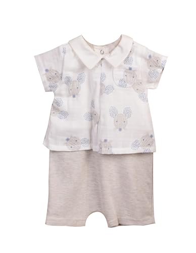 Berceau - للأولاد بدلة مطبوعة نصف كم قطن بيج وأبيض