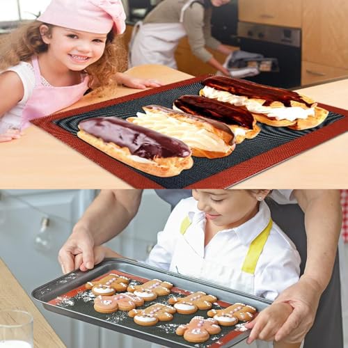 - 【غير لاصقة وغير قابلة للانزلاق】بفضل سطح حصيرة الفرن غير اللاصق، لا حاجة للزيت أو بخاخات الطبخ أو ورق البرشمان المثالي للحصول على خيارات صحية. لقد صممنا مجموعة الخبز الخاصة بنا بألوان زاهية وممتعة، حتى تتمكن أيضًا من جعل أطفالك متحمسين لتناول الطعام الصحي.