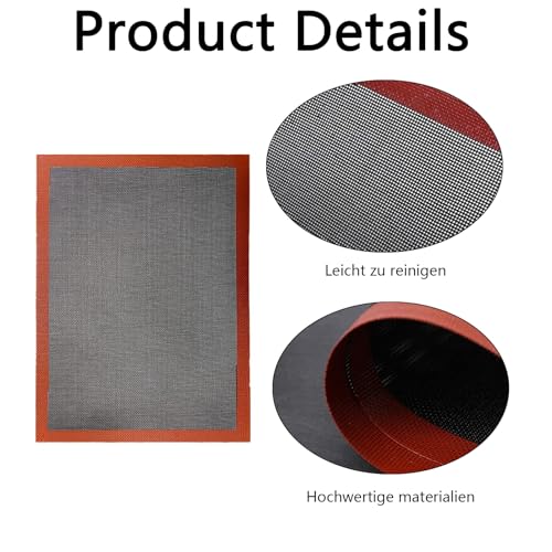 - 【موثوقة ومتينة】يمكن لحصيرة الخبز المصنوعة من السيليكون أن تتحمل درجات الحرارة في الأجهزة مثل الفرن وفرن الميكروويف والفريزر وغسالة الأطباق. سهلة الاستخدام ومريحة عند خبز البسكويت والمعكرون والبيتزا والمعجنات والبريوش والخبز وما إلى ذلك.