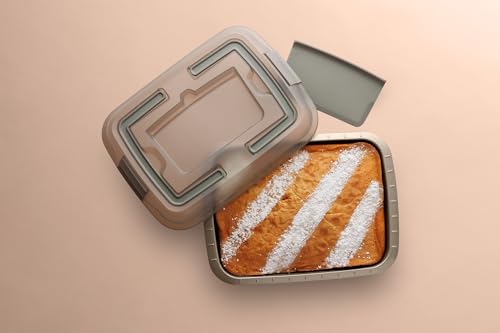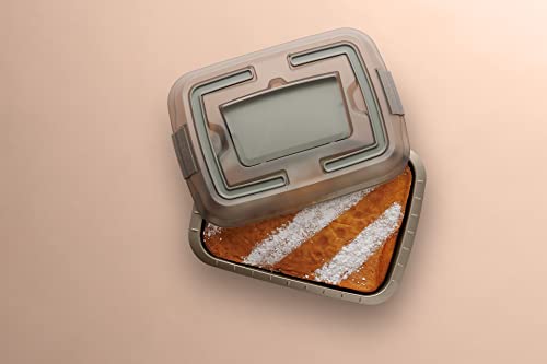 Berghoff - بيرجوف صينية كيك مستطيلة غير لاصقة مع قطاعة من بالنس غطاء مطابق مقبض قابل للطي 38×29×8سم ستيل كربوني خفيف الوزن طلاء سام امن للاستخدام في الفرن حتى 450 درجة فهرنهايت بلاستيك بني