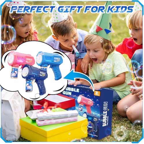 Beria - 3 عبوات من مسدسات الفقاعات مع 3 حلول، الة فقاعات اوتوماتيكية للاولاد والبنات، هدايا عيد ميلاد للاطفال من سن 3 و4 و5 و6 و7 و8 سنوات، العاب صيفية خارجية للاطفال الصغار، هدايا الحفلات والزفاف