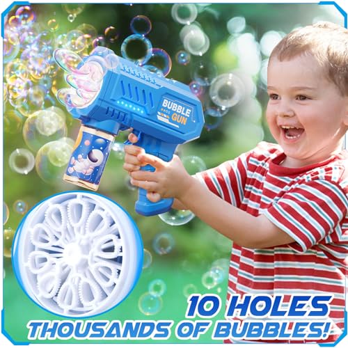- قاذف أوتوماتيكي بـ 10 فتحات: يتميز بـ 10 فتحات وتشغيل تلقائي، ينتج مسدس الفقاعات هذا تدفقًا هائلاً من الفقاعات. ضغطة واحدة على الزر وشاهد مئات الفقاعات تملأ الهواء