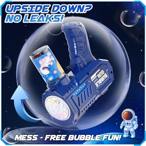 - إضاءة - عرض الفقاعات: تضيف الأضواء المدمجة تأثيرًا مبهرًا إلى الفقاعات، مما يخلق عرضًا سحريًا خاصًا أثناء المساء أو في الغرف ذات الإضاءة الخافتة. تتطلب 4 بطاريات ايه ايه (غير متضمنة)