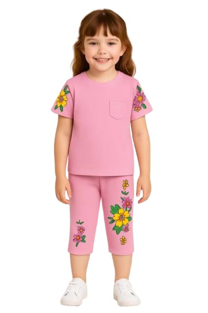 Generic - طقم بيجامة قطن برمودا للبنات - باكمام قصيرة - مطبوع بجودة عالية