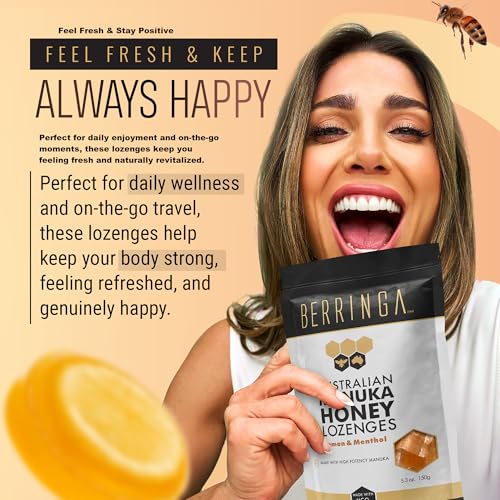 Berringa - أقراص عسل المانوكا الأسترالي بتركيز 900+ ميثيل جول ونكهة الليمون والمنثول من بيرينجا