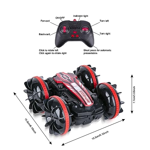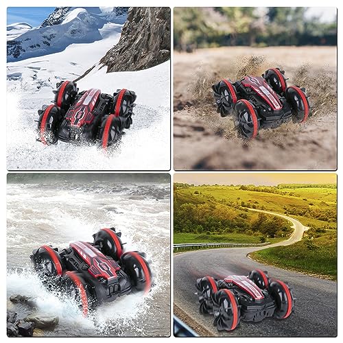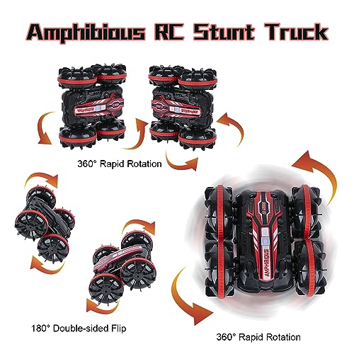 Berry President - سيارة برمائية تعمل بجهاز تحكم عن بعد من بيري بريزددنت، شاحنة بهلوانية للطرق الوعرة 2.4 جيجاهرتز، لعبة رباعية الدفع لجميع التضاريس، مركبة مائية برية مع دوران 360 درجة للاطفال (أحمر)