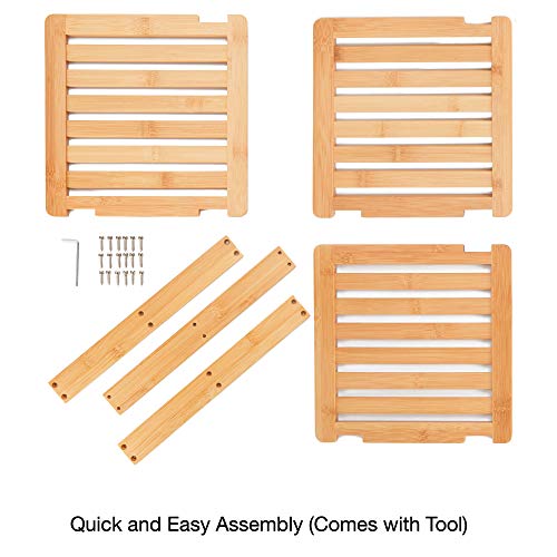 BERYLAND - رف زاوية من الخيزران 3 طبقات من بيريلاند، مقاس 25.4 × 25.4 سم، ارتفاع 29.2 سم منظم دولاب المطبخ لتنظيم وتخزين المؤن - ارفف لطاولة الحمام
