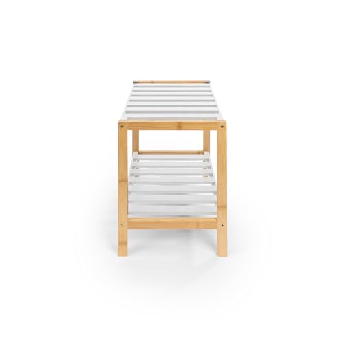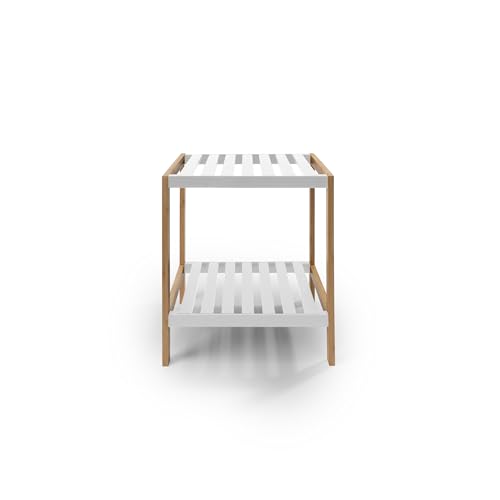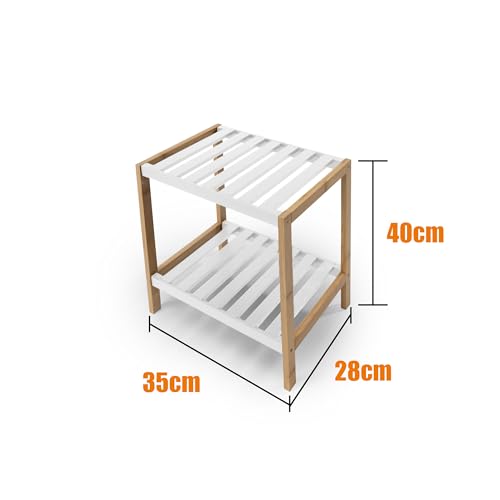 BESCH - رف خشبي مع اطار من الخيزران من بيش، مستويين، 40 × 35 × 28 سم، منظم رفوف قابل للازالة للحمام وغرفة المعيشة وغرفة النوم، 2 رفف، ابيض
