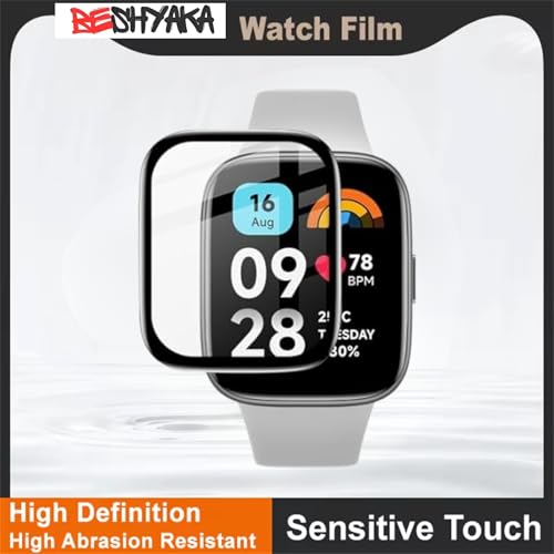 BESHYAKA - واقي شاشة من بيشياكا لساعة ريدمي ووتش 3 اكتيف - وضوح HD، شاشة بحافة منحنية ثلاثية الابعاد، مضاد للخدش، مقاوم للكسر بدرجة عالية، حساسية لمس فائقة، سهل التركيب - ليس زجاج
